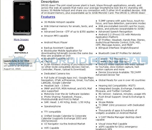 A pochi giorni dal suo lancio, appare sul web la prima immagine in cui è possibile vedere le caratteristiche tecniche complete del terminale (in basso). Il nuovo Motorola Droid 2 dovrebbe essere commercializzato anche sul mercato europeo col nome di Motorola Milestone 2, anche se per il momento non ci sono dettagli sul periodo e soprattutto sul possibile prezzo.