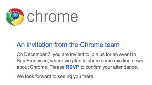 Da quanto riportato dal sito engadget.com, Google Chrome potrebbe essere svelato al pubblico già nel corso della prossima settimana, più precisamente il 7 Dicembre. Google sta infatti distribuendo gli inviti per un evento Chrome che si terrà a San Francisco.